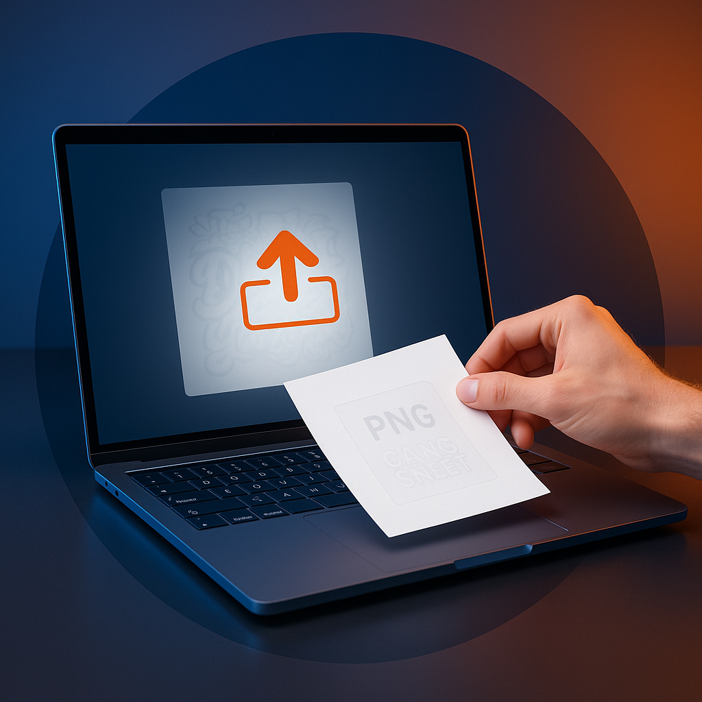 Upload 300 DPI PNG files with transparent backgrounds (RGB mode) for crisp results.